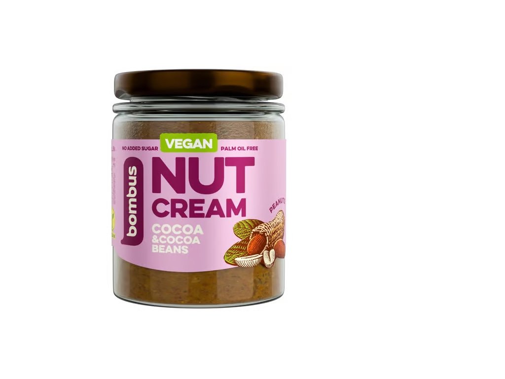 Ochucený arašídový krém s kakaem se sníženým obsahem tuku a kakaovými nibsy. Neobsahuje žádný přidaný cukr, mléko ani palmový tuk.