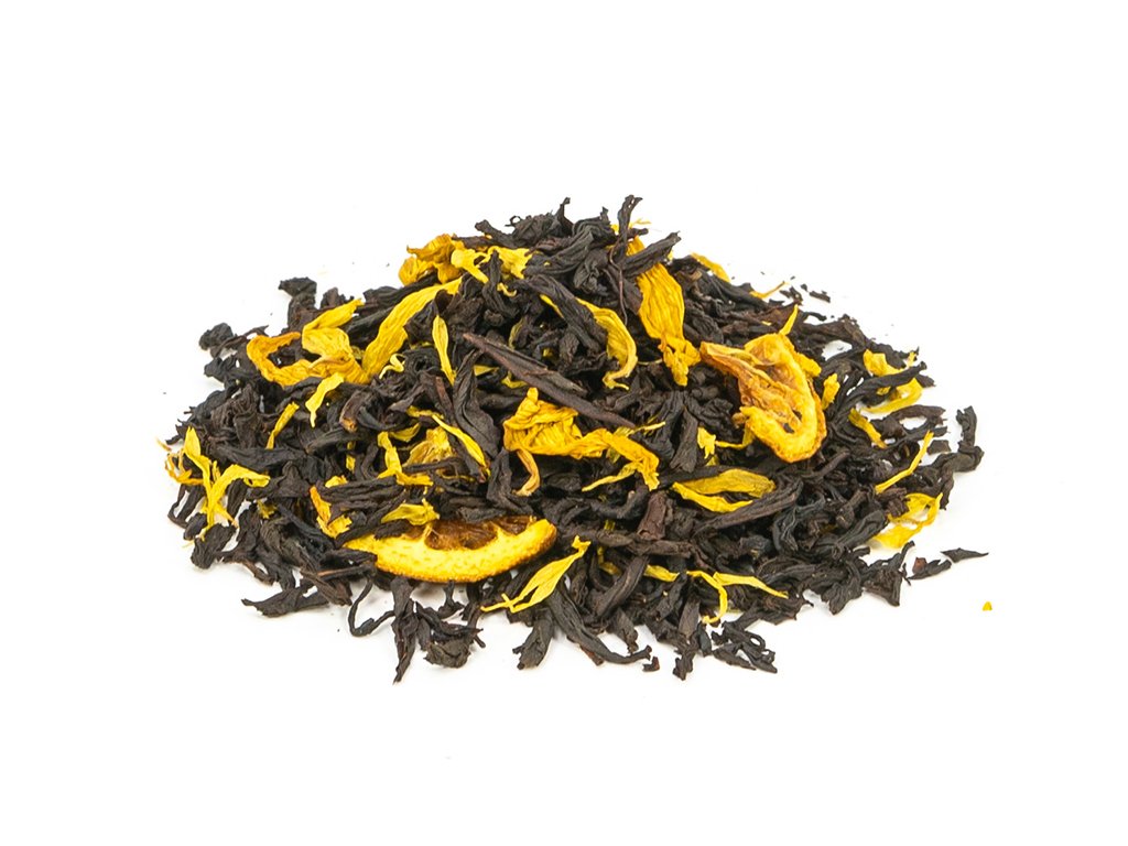 Složení: OP1 Cejlonský černý čaj, bergamotový olej, plátky pomeranče, měsíček a okvětní lístky slunečnice.