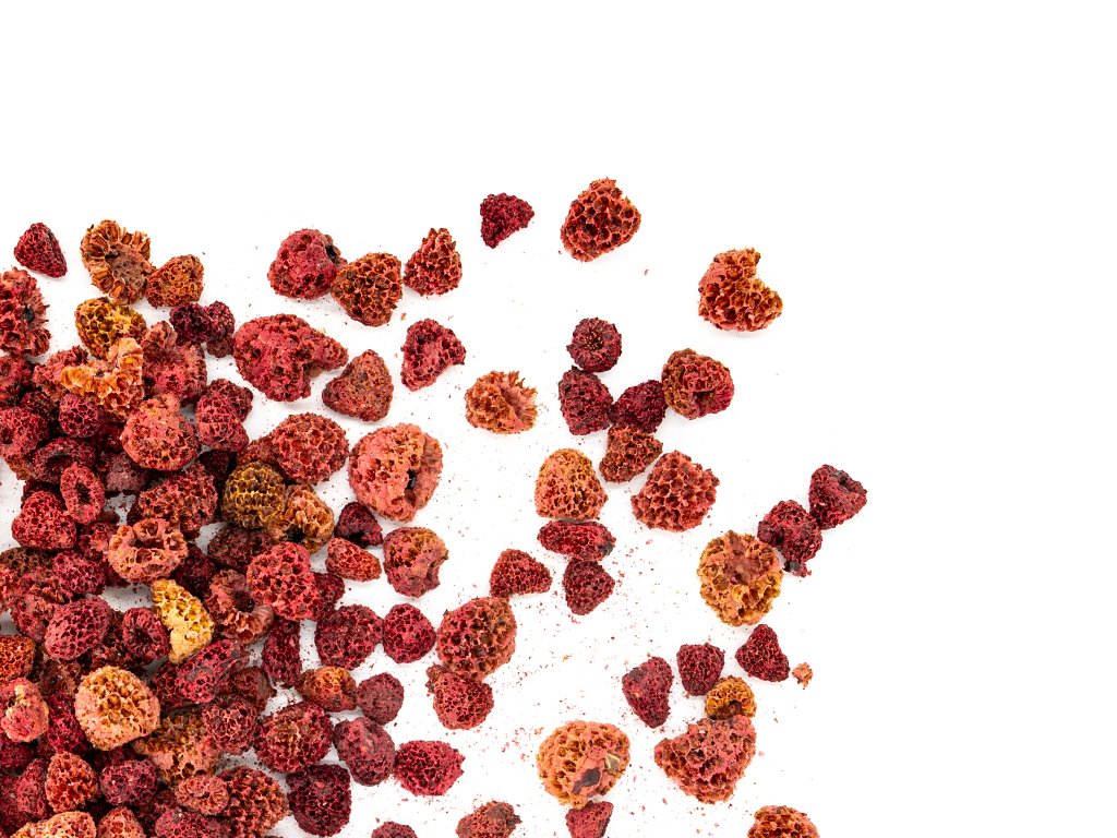 Použití: sušené maliny jsou chutnou a zdravou alternativou k čerstvým malinám. Sušením se snižuje obsah vody a zvyšuje se koncentrace živin, což z nich dělá vynikající zdroj vitamínů, minerálů a antioxidantů. Kromě toho jsou sušené maliny praktické na skladování a mohou být použity jako ingredience v různých receptech. Jsou skvělým způsobem, jak si dopřát chuťovou lahůdku plnou živin. Můžete je konzumovat samostatně nebo jako součást různých jídel a dezertů.