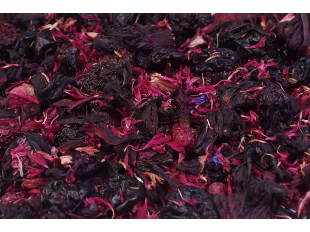Právě tyto vlastnosti inspirovaly vznik ovocného čaje Višňové bohatství. Směs kombinuje kandované i lyofilizované višně, doplněné o květy hibiskusu, černý a červený rybíz a šťavnaté královské rozinky. Růžové okvětní plátky chrpy dodávají směsi jemnost a eleganci, zatímco přírodní aroma zvýrazňuje bohatou ovocnou chuť.